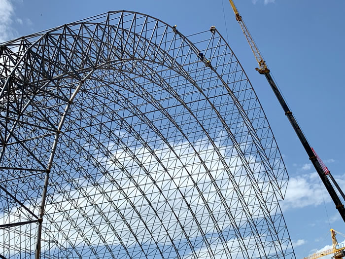 (2)网架加工前应对现场尺寸进行复测,确认无误后方可进行加工、安装;网架制作、运输、安装应遵守《空间网格结构技术规程》JGJ7-2010、《钢网架宁德螺栓球节点》JG/T 10-2009、《钢网架宁德螺栓球节点用高强度螺栓》 GB/T 16939-2016、《宁德钢结构宁德工程宁德施工规范》 GB50755-2012、《宁德钢结构宁德工程施工质量验收标准》 GB50205-2020。